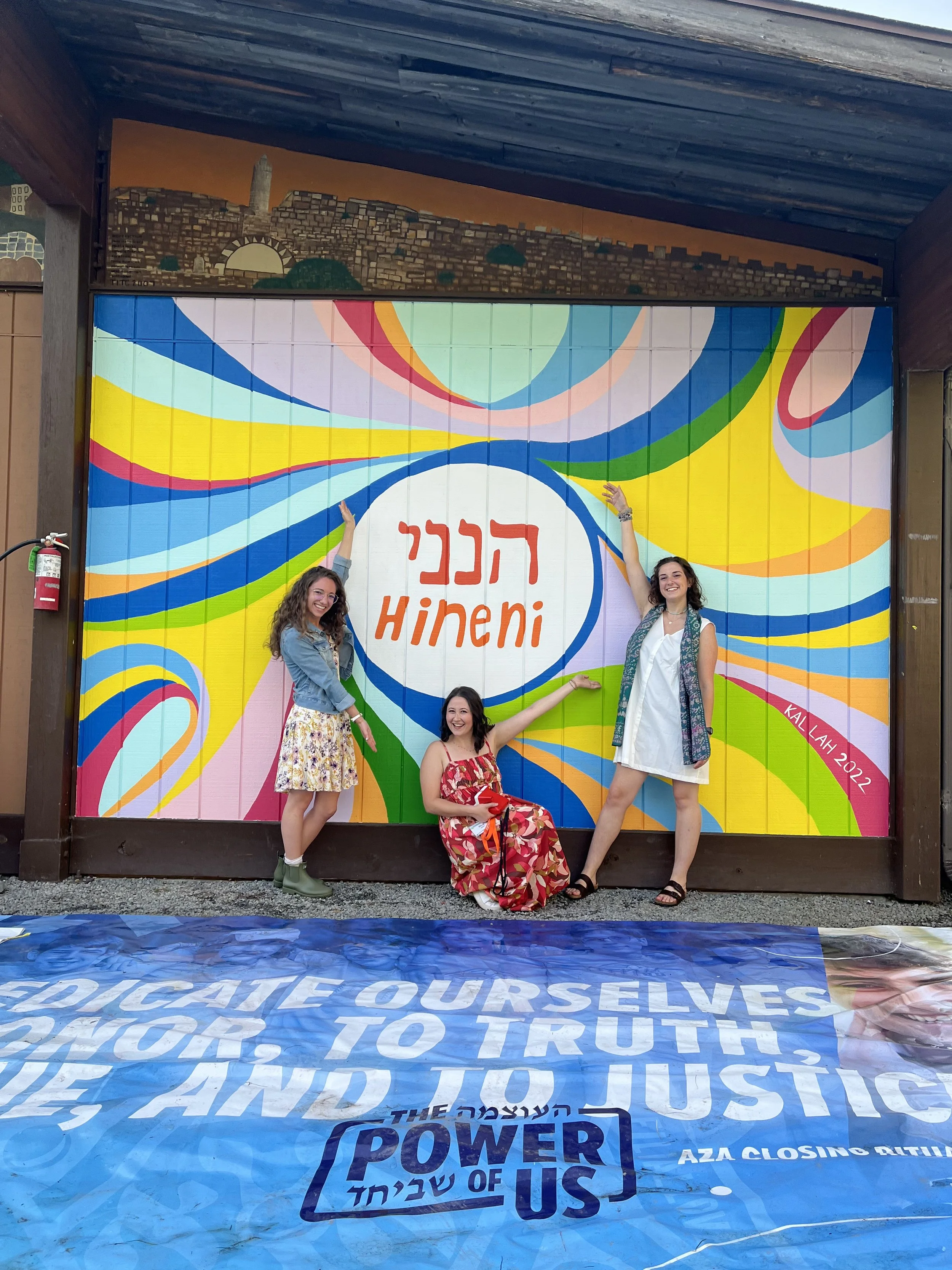 The inaugural Hineni mural was a collaborative masterpiece crafted in sync with 150+ teens from BBYO’s summer leadership initiative providing a beacon of vibrancy located at the heart of camp.